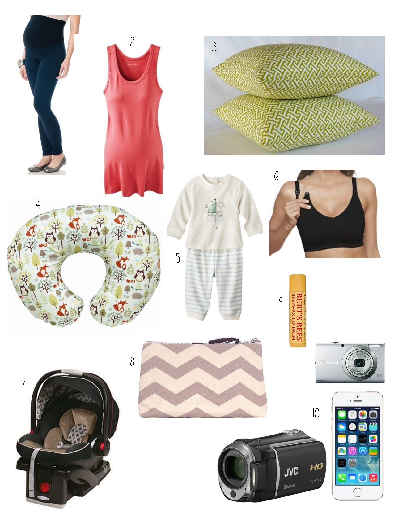 10. Electronics. Your phone will keep you occupied and allow you to snap quick photos of visitors or of your little bundle when he/she arrives. Hello Facebook updates! A good camera will help capture your baby’s first moments – you don’t want to miss those. Same with a camcorder. We love having Everett’s first moments in the world on video – it is truly awesome to watch it.