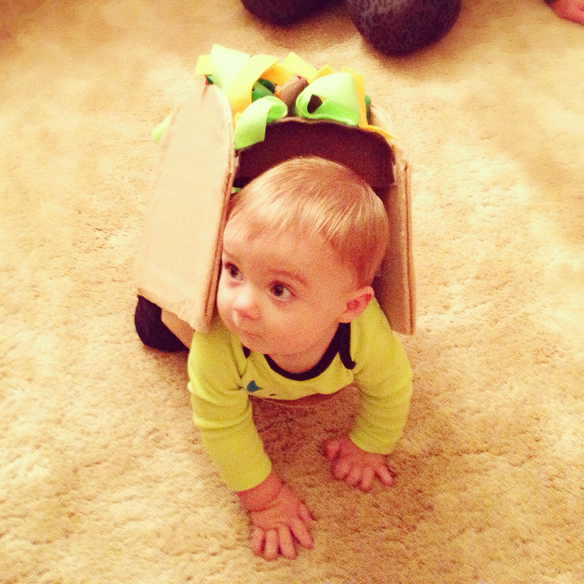 here’s what i came up with: a taco. a crawling taco, to be exact! don’t worry, you’ll get to see this gem of a costume below. my mom and i hand-made it and, i must say, it was pretty awesome!