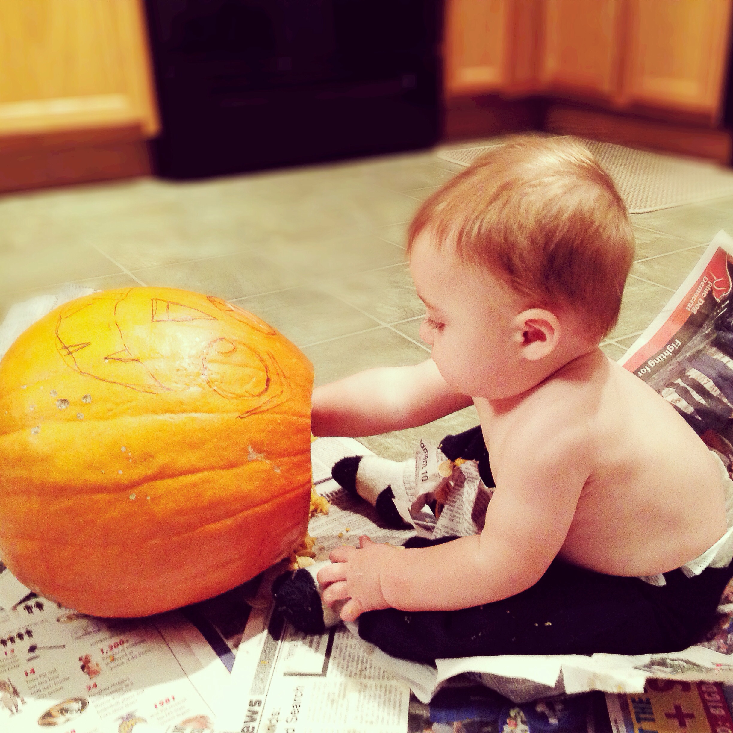we did a little family pumpkin carving. everett loved the guts! he put his whole head in as soon as we cut the top off!