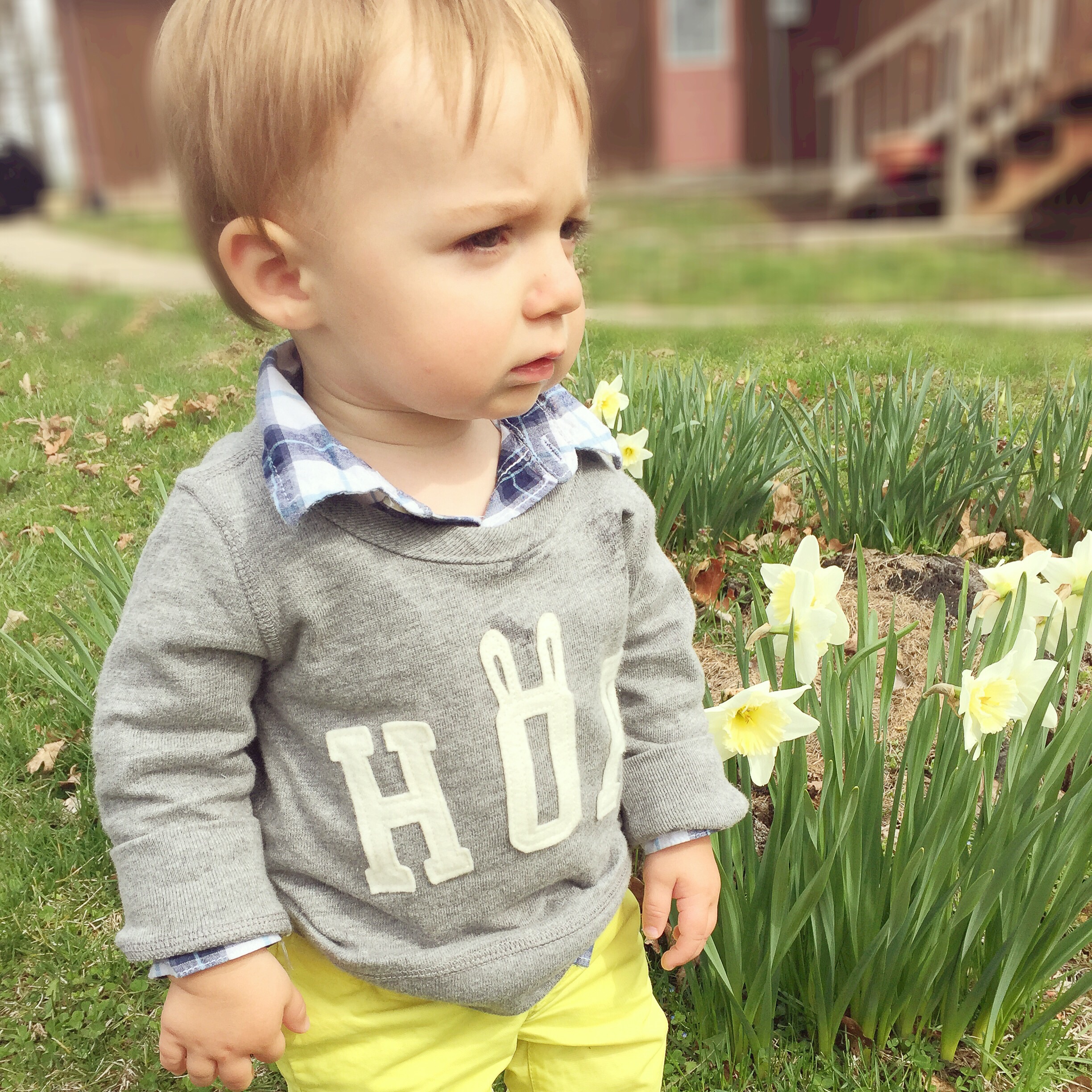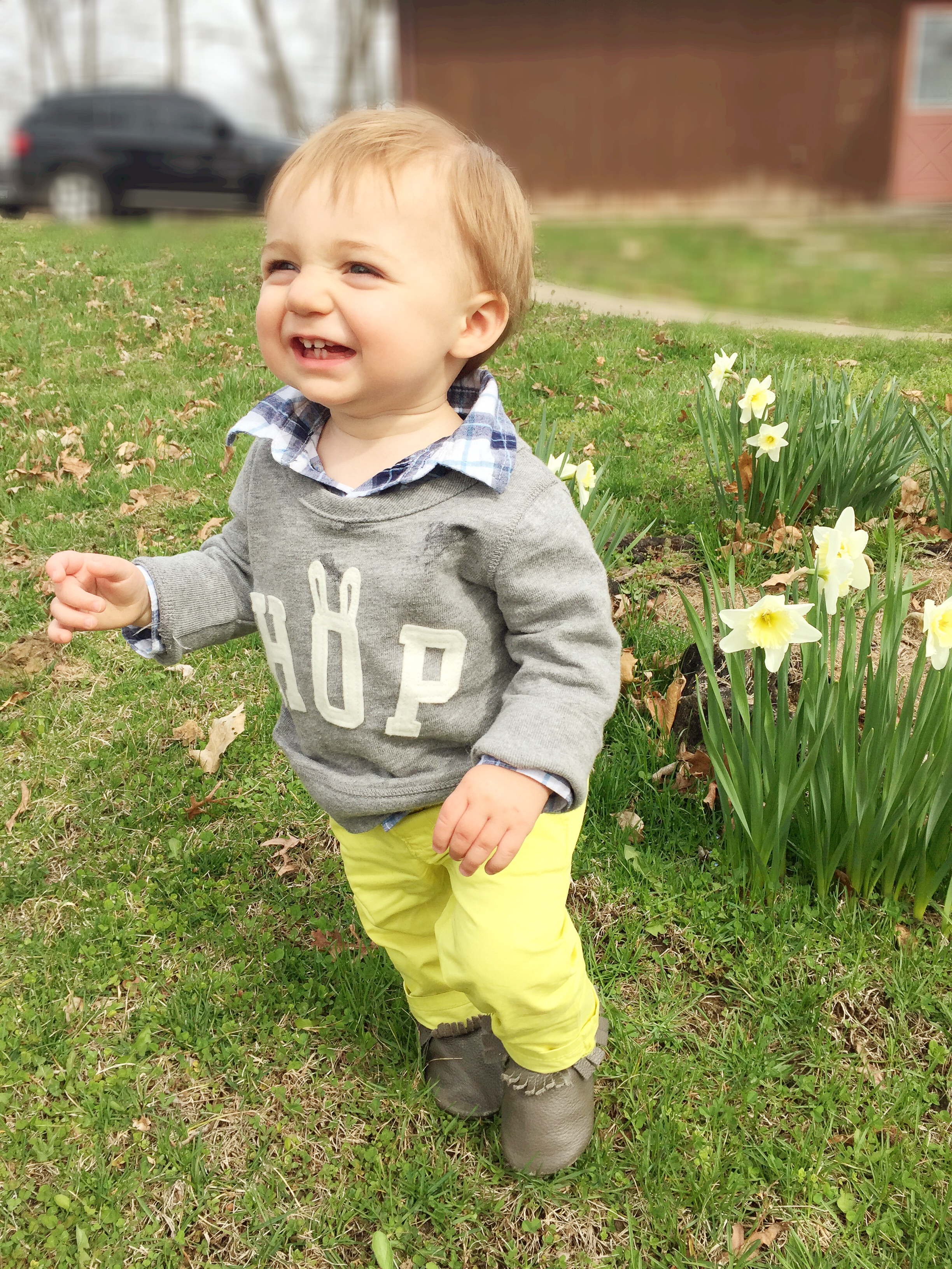 we have two easter celebrations in our family. we go to my parents’ house for a dinner on saturday and then celebrate with andrew’s mom and sisters (and their families) on sunday! so it is a fun-filled weekend! everett was in the mood for posing this year, so why not! everett was too small to easter egg hunt last year, so watching him hunt this year was a treat. he was so into it! the easter bunny treated him good….and so did his grandparents. #spoiled