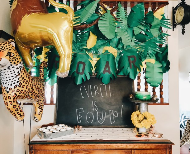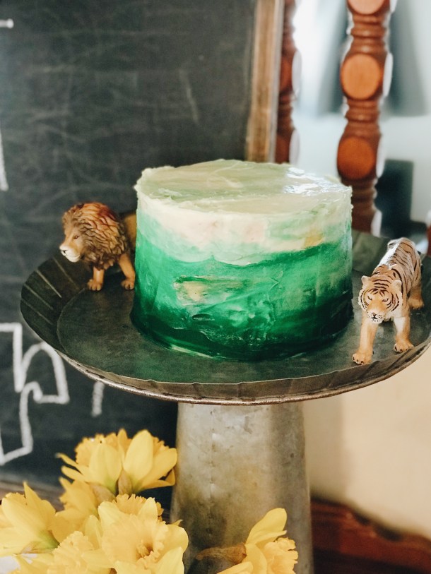 he is into big cats (lions, leopards, tigers – you name it, we have a figurine and probably a stuffed animal, too). so we decided to have a ‘big cat’ jungle party for his birthday. he was so excited to see all of the decorations! he even got to have a special morning with his uncle scotty – so he was all kindsa pumped! 😉