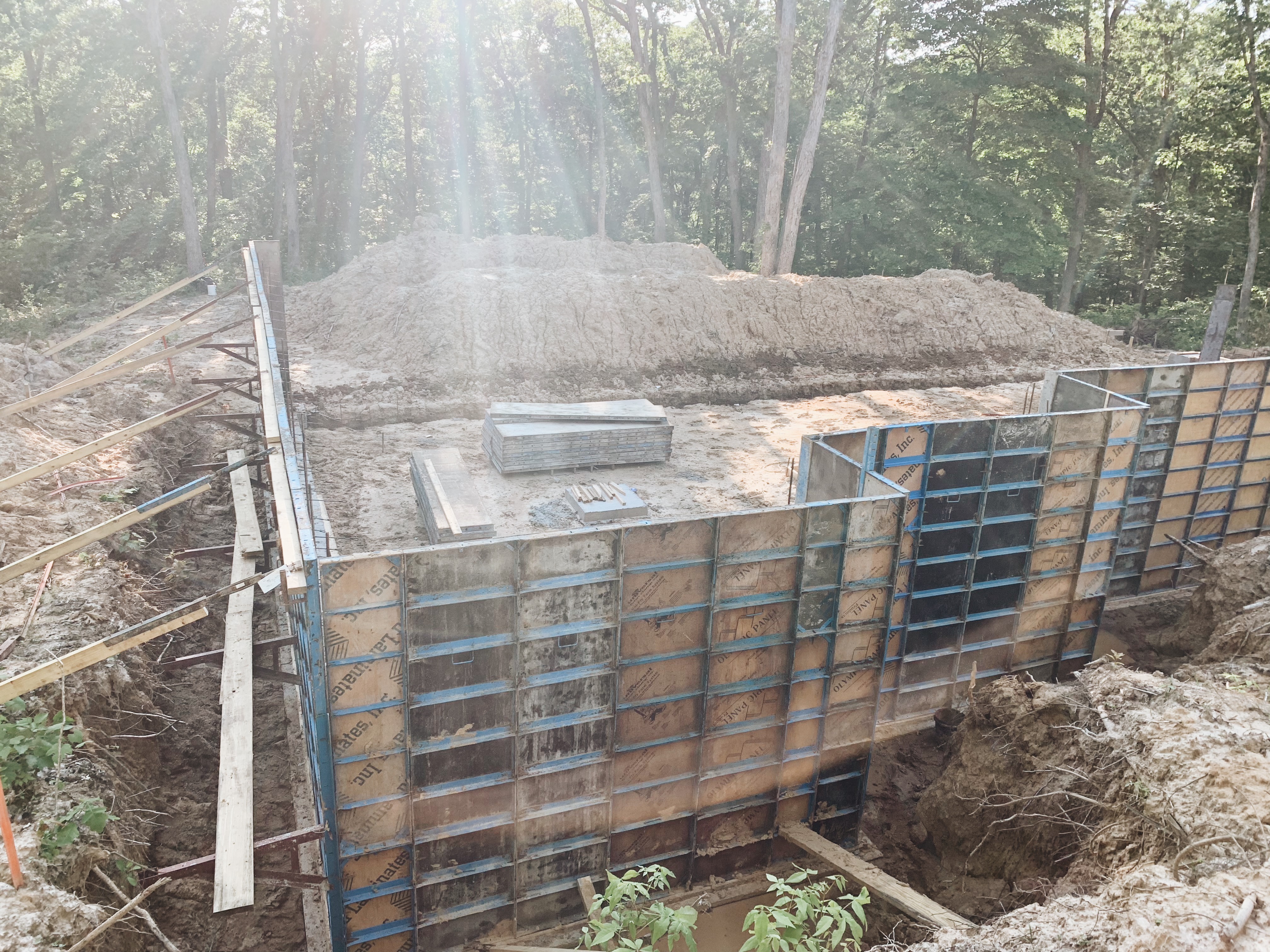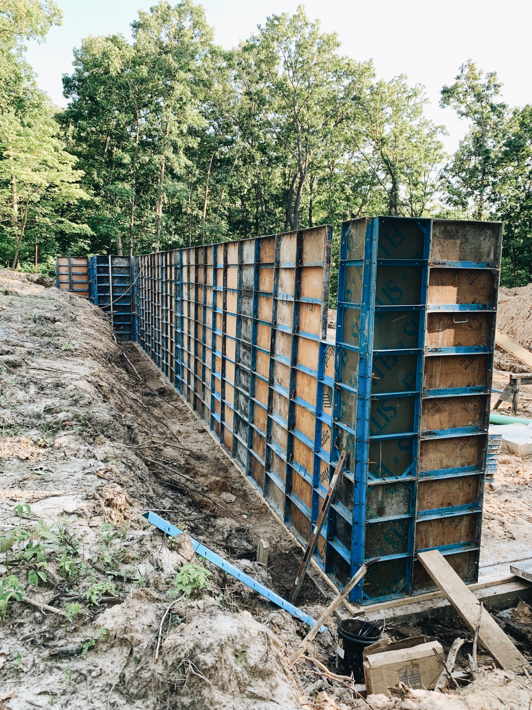 the basement was quickly followed by forms. we went with a 9′ pour on the foundation. since the entire back of the house is open, we thought that would allow for a better layout for living space down there.