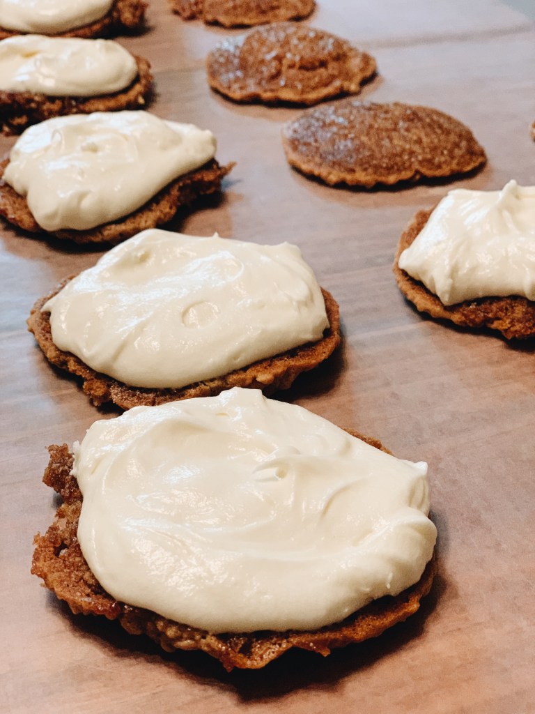 8 | spread cream filling on a cookie and top it with another.